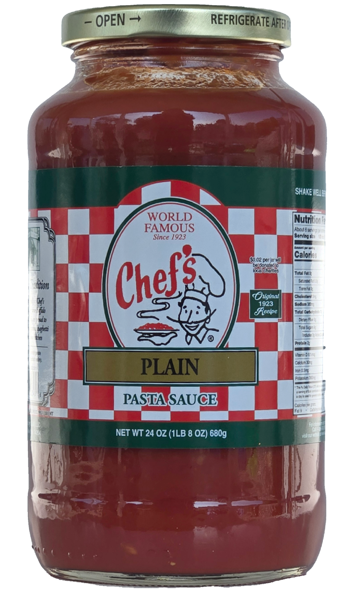 Jarred Plain Sauce – Our plain sauce has all the flavor of our original served in at Chef’s Restaurant, without the meat. Enjoy it over our meatballs or on your homemade originals.