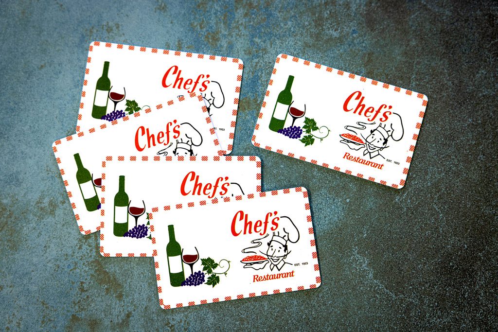 Chef’s Gift Cards are a delectable way to celebrate a birthday, recognize an accomplishment or reward an employee. Purchase your gift cards here in individual increments or customize your gift card order. What says “You’re the Best!” more than bringing people together where Family and Friends Meet to Eat! Gift cards will be sent via mail to the address you specify.